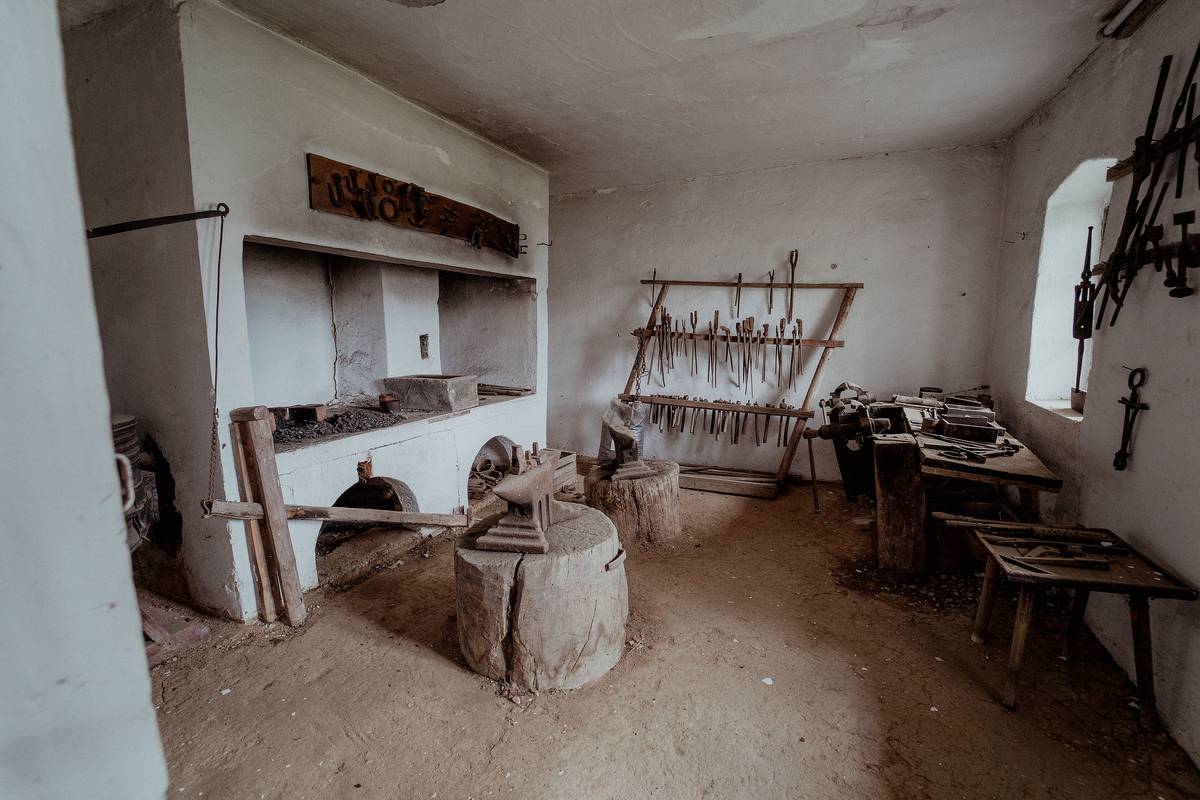 Dieses zweiteilige Gebäude besteht aus überdachtem Vorraum und Arbeitsraum mit Esse, Blasebalg und Werkstatteinrichtung. Die originale Innenausstattung aus dem späten 19. Jahrhundert wurde aus dem Besitz der Familie Lutterschmied - Pieber erworben.